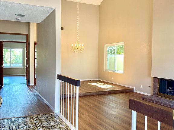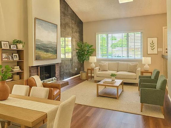 Welcome to this beautifully maintained single-story residence offering 4 bedrooms, 2 bathrooms, and 1836 square feet of thoughtfully designed living space. Nestled in a highly desirable neighborhood, this home blends comfort, style and functionality! Step inside to find hardwood and tile flooring throughout, creating a modern feel with easy upkeep - no carpet to worry about. The spacious living room boasts a cozy fireplace and expansive windows, providing a warm, inviting atmosphere ideal for both relaxing and entertaining. The living room's cathedral ceilings extend into the formal dining room, creating quite the first impression upon entering the front door!
