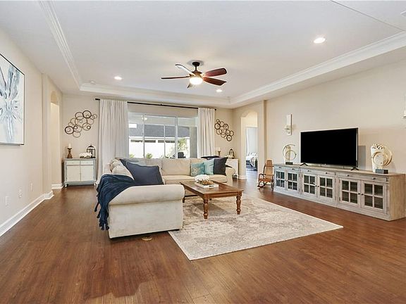 Move in ready 4 bed, 3 bath, + office, located in gated Arbor Woods subdivision. Home offers open floor plan, Pergo wood laminate flooring in all living areas, ceramic tile laid on the diagonal in bathrooms, 3 car garage, fully fenced backyard and screened in lanai. Upgraded gourmet kitchen with 42â cabinets, gas range, and stainless steel appliances. Large master suite with double closets, garden tub, dual vanities, and large walk-in shower. Perfect guest suite with private bathroom. Culligan water softener added, all appliances included. Arbor Woods offers a community pool, playground, and splash pad. Easy access to I-275, I-75, Shops at Wiregrass, and Tampa Premium Outlets. No CDD!