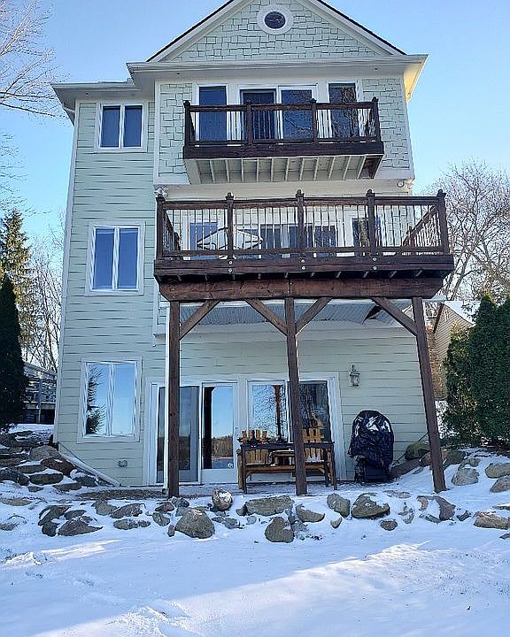 Lakefront home on Lakeville Lake with approximately 45" of lakefront, including a boat dock. Lower level walkout has living/kitchen area, full bath and full bedroom. Main living area has kitchen/great room/dining and half bath. Upper floor has three bedrooms and two full baths. Master bedroom and one guest room each have cathedral ceilings. Kitchen remodeled in 2016 to add stainless steel appliances and granite counter tops. Lower level contains the 4th bedroom. 1 car garage. Lower level has same height ceilings (12 ft) as the Main Level.