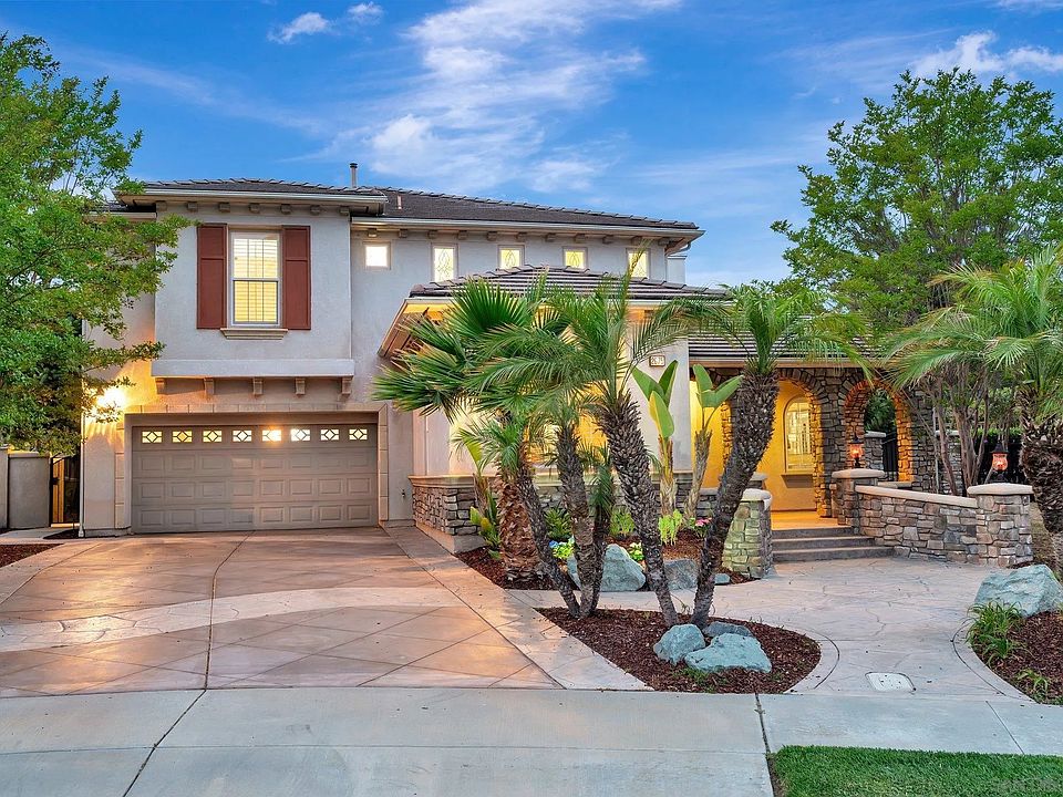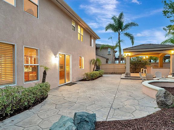 Gorgeous ‘Eastlake Vistas’ home on a large, premium lot of over 1/5 Acre! Private, ‘cul-de-sac' location. Exterior upgrades include a rich, stone decor trim around the home w/ tropical landscape & a variety of palms surrounding the property. Enjoy countless hours of outdoor entertaining with family & friends around the gazebo w/ an outdoor kitchen & gas grill, a private in-ground Spa for relaxing & a fire pit for the evening ambiance. The spacious 2,944 Sq. Ft interior is light & bright w/ lots of windows allowing for tons of natural light throughout the home. Upgraded features include a formal 'iron wrought' staircase at the entry, plantation shutters on all the windows & recessed lighting in nearly every room, brand new carpet & tile flooring throughout, upgraded kitchen w/ granite slab counters & tons of cabinet space, stainless steel appliances w/ dual-oven & gas range, a large kitchen island w/ seating, reverse osmosis water system for food prep, custom 'built-in' desk for the upstairs home office, spacious primary bed/ bath with a large walk-in shower & walk-in closet, full-size indoor laundry room upstairs & more. Other features include a dual A/C for cooling the home separately upstairs or down, a home alarm system for security, 3-Car tandem garage w/ epoxy flooring & newer water heater. 5BR/ 4BA floor plan w/ 'entry-level' bed & bath. Located in the master association of Eastlake, ownership includes membership to the prestigious Eastlake Community Center w/ Olympic size swimming pool & tons of other amenities for its' residents.
