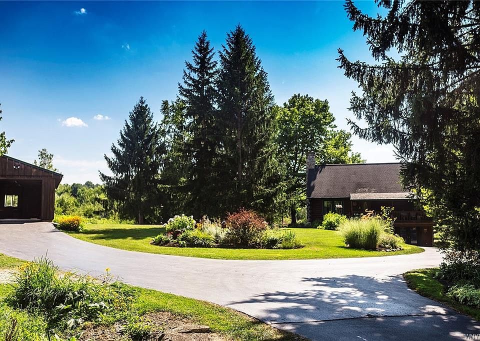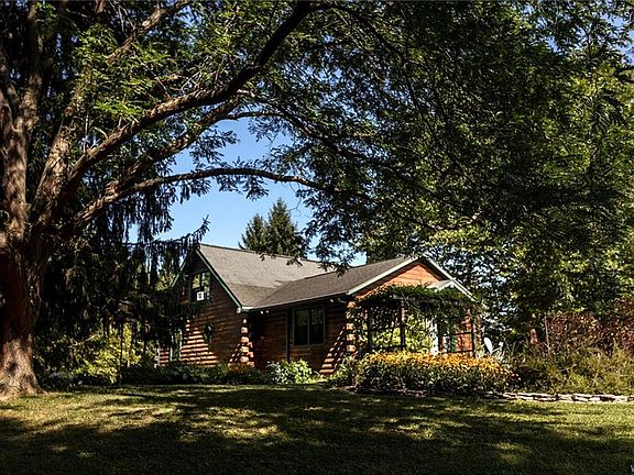 2675 Gowanda Zoar Rd; Original owners are leaving this beautifully built log home, that is perfectly nestled on over 23 private acres. The ground level offers a large open entry foyer/mud room, bedroom and workshop. The main level features a large living room, with wood burning fireplace, stained glass windows, dramatic cathedral ceiling and is open to the good sized kitchen. Here you will find a generous sized island, plenty of cabinet/counter top space and stylish tiled back splash. First floor bedroom, full bath and laundry. Good sized family room with Air conditioning and separate deck overlooking the gorgeously landscaped yard. Upper level is the loft bedroom, and private 1/2 bath. Extra large 2.5 plus car garage. Wonderfully cared for grounds with trails surround this home creating a one of a kind private paradise. Square footage of 2,449 including family room addition and partially finished walkout basement is not included on the tax record.