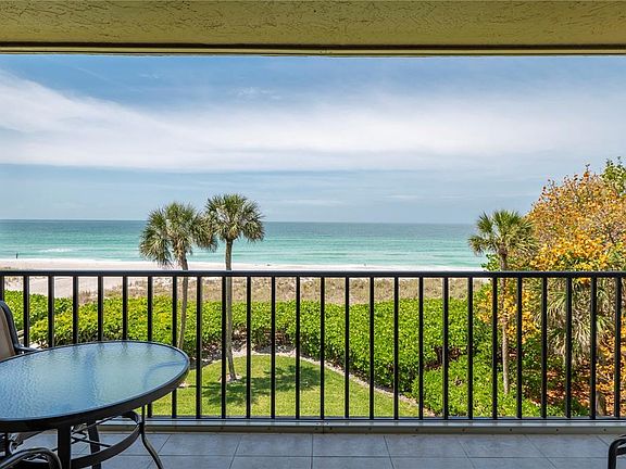 This exclusive corner unit at Veinte presents a rare opportunity to immerse yourself in the beauty of Gulf-front living. Nestled on the third floor, this spacious 3-bedroom, 3-bathroom TURN-KEY condo boasts unparalleled panoramic views of the Gulf of Mexico's pristine coastline. Step outside and feel the soft sand beneath your feet, as direct beach access awaits just steps away. Spanning 2,100+ sqft this meticulously renovated residence exudes luxury and comfort at every turn. Sunlight floods the living space, highlighting the high-end tile flooring and elegant crown molding throughout. The chef's kitchen is a culinary masterpiece, featuring Cambria quartz countertops, top-of-the-line stainless steel appliances including an induction cooktop and wall ovens, and a stylish wet bar-all framed by stunning views of the Gulf. Retreat to the inviting primary suite, complete with an office nook/sitting area, spacious walk-in closet, and a lavish bathroom adorned with Cambria quartz. Step onto the private screnned lanai to savor morning coffee against the backdrop of gentle Gulf breezes. Guests will enjoy a large room with private bath. This unit has never been rented and was sparingly used by owners and features a 2023 water heater and 2019 AC unit for added comfort. Reserved covered parking spot with an electrical outlet for electric vehicles and a storage area provide convenience and peace of mind. For those seeking a peaceful retreat, Veinte-a mid-rise, 20-unit building-offers an exclusive living experience with private amenities including a heated swimming pool, tennis court, and deeded beach access. NEW ROOF and NO CURRENT ASSESSMENTS. Conveniently located opposite Publix and the Longboat public tennis courts, Veinte provides easy access to all the necessities. With St. Armands Circle nearby, fine dining, shopping and entertainment options abound, ensuring every day ends with a spectacular Florida sunset
