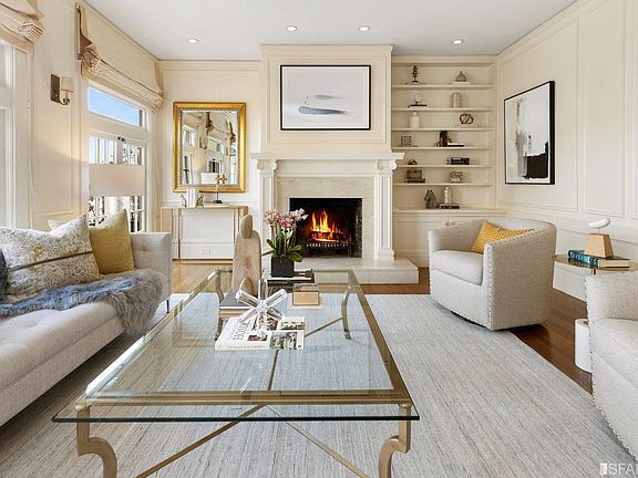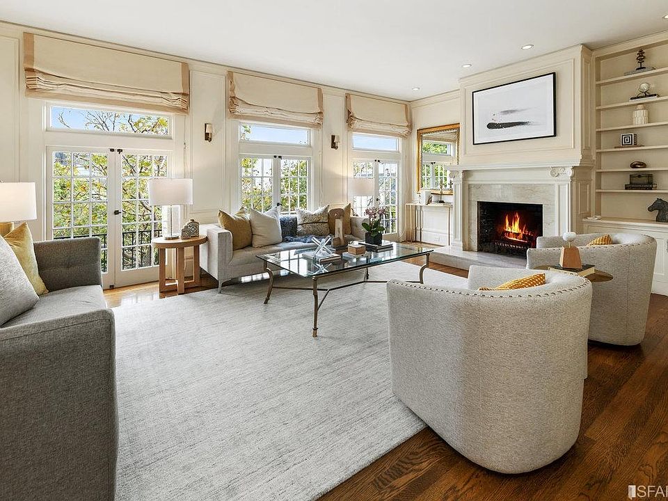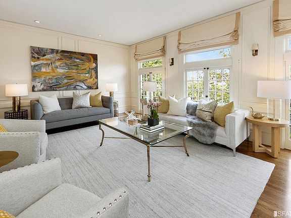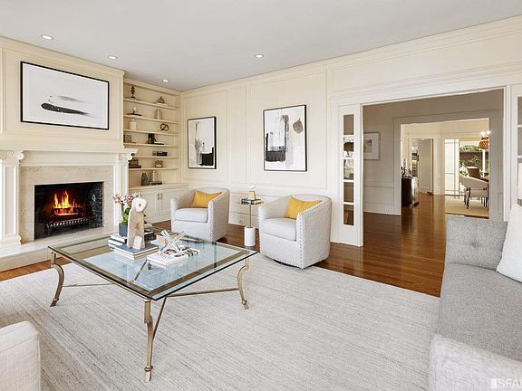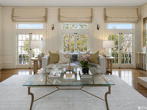 Stately home on a coveted block in prime Pacific Heights, cared for by the same family for over 40 years! A gracious foyer displays rich hardwood flooring and classic period details. The grand living room features a fireplace and a Juliet balcony, and a formal dining room leads to a sunny breakfast room with direct garden access. Adjacent is a spacious kitchen and a laundry room. On the 2nd level are 4 lovely bedrooms plus an office, and 2 baths. The front bedrooms share a Juliet balcony with views of the Bay and Alcatraz. The primary bedroom boasts 2 walls of closets/cabinetry and an ensuite bath, and both back bedrooms share a south-facing deck. On the lower level are storage rooms, a wine cellar, and a guest bed/bath (likely unpermitted). The lush garden has a paved seating area and terraced levels with pretty landscaping, and there is also an elegant front deck. 1-car garage. Ideally located a block from Alta Plaza Park and nearby shops and dining on Fillmore & Union Streets.