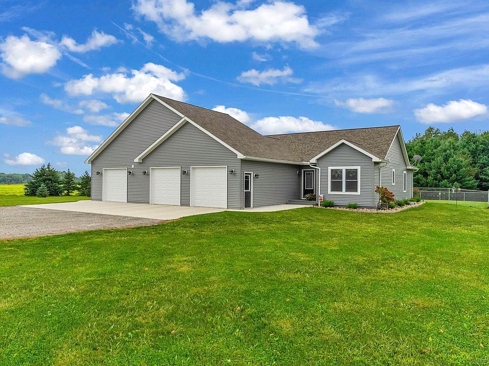 Welcome to your own personal paradise! Nestled on 40 wooded acres of enchanting land, this one-of-a-kind property offers everything you've ever dreamed of and more. Built in 2022, this ranch home is designed to embrace the beauty of its surroundings. The home features an open concept living room with gas fireplace, well-appointed kitchen and dining room; 3 cozy bedrooms, 2 full bathrooms and laundry on the main floor. Full, finished basement with half bath offers additional space for family and entertaining. Attached 2 car garage PLUS a 3rd car section is where your personal swim spa is located and another half bath. The large 40x45 shed will be the envy of all your friends - finished off and heated, with bar, kitchenet, living space with 3 bedrooms and full bath. If it is peaceful walks, wildlife or hunting that you enjoy, this extraordinary piece of countryside paradise is just the home for you. Property is subject to township split approval and will have a 30' easement.