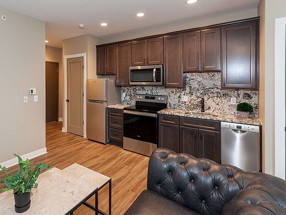 Amenities: Fully secure building with key fob access, buzzer system, 24-hour video surveillance, indoor mail/package room, elevator, work-study cubicles, hospitality room with kitchenette, exercise room.