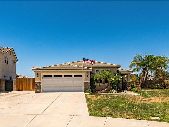 FABULOUS MENIFEE HOME ON A LARGE "POOL SIZED" LOT & SIDE GATED AREA FOR YOUR TOYS! Offers a beautifully upgraded single story with quality & comfort located in the highly desirable Country Meadows Community. This turnkey home features 4 potential Bedrooms (1 currently used as an office & 3 with full closets), 2 Bathrooms & a "bonus" room (fully enclosed patio). Offers high ceilings & light & bright open floor plan with many upgrades to include LVP flooring, new paint, new custom fixtures, new carpet, granite counters, recessed lighting, new ceiling fans, Annke security system with DVR+monitor & 8 cameras (holds up to 16) & water management device (Flo by Moen). Enjoy the spacious living space including living room + dining room combo & family room with fireplace & built ins. The open kitchen has granite counters, stainless appliances & large pantry. Features large, Primary Suite w/walk-in closet, high ceilings & slider leading to the backyard. The Primary BA has tile flooring, dual sinks & large tub-shower. Also, offers a tiled, fully enclosed patio "bonus room" that has 2 access doors leading to the 100% useable .25 ACRE LOT with plenty of room for a pool! The extra large backyard is perfect for anyone wanting to design their own backyard Oasis. It currently includes mature Grapevines, 3 raised flower beds, custom fire pit, gazebo with patio table & chairs, 10' x 12' (appx) shed on concrete foundation, smaller storage shed & 6 seater above ground spa. Offers all this, has low taxes, near local restaurants & shopping & located between the 15 frwy + 215 frwy for easy commuting! Don't miss out on this one!