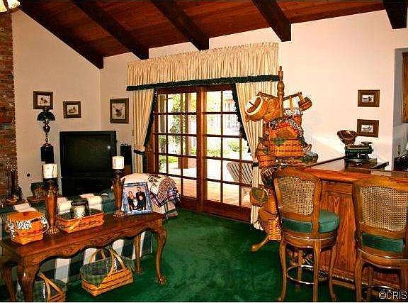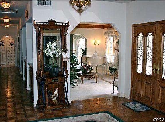 Features a Billiard's room (pool table stays), and office with built in oak desk and oak bookshelves, a gourmet kitchen with sub-zero refrigerator, a private guard gated equestrian community, 2 full manicured acres fenced, remote spa outside master bedroom, large attic above the 4 car garage, custom leaded glasswork throughout, an octogon breakfast nook, private courtyard with fountain, "u" shape floor plan, large master bedroom with sitting area, large oak trees, fruit trees & gardeners planter area, 2 fireplaces with one doublesided, many more amenities. Neighborhood Description This neighborhood is quiet, the people are friendly, there is a mix of older couples and also young families with children. Some families have golf cars and go for a ride in the neighborhood in their golf car. Everyone takes very good care of their homes & yards , so everything always looks nice. We have a home owners association, with gate attendent, which is $275.00, and they help keep everything in check to make this a wonderful place to live.