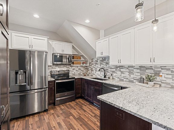 Beautiful, multi-level townhome in highly desired Harmony Village & ISD196! Great open floor plan perfect for entertaining or just enjoying time with family. Cozy up to the fireplace on those chilly nights. The gorgeous kitchen offers great cabinet space, granite countertops, tile backsplash, stainless steel appliances & engineered hardwood flooring. Upstairs enjoy a large primary suite featuring double sinks, large step-in tiled shower and huge walk-in closet. 2 other spacious bedrooms and full bath upstairs with laundry and large loft for playroom or gaming. Opportunity knocks to build equity in the unfinished basement to add 4th bedroom with egress window already in place & 4th bathroom plumbed in or just keep as huge storage area! The original owners loved this home and kept it well maintained. It's now time for new memories to be made. Schedule your private tour today!