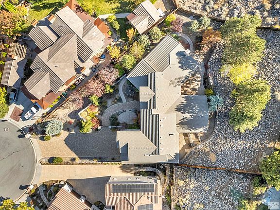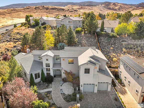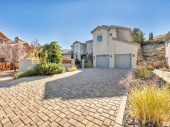 Welcome to this striking contemporary home in Manzanita West, a true showstopper with unique, creative design. This spacious residence offers an impressive layout with 3 bedrooms plus an office/loft, 3.5 baths, and a 4-car tandem garage—perfect for car enthusiasts or additional storage. Enter through the elegant, paver-lined courtyard with a fountain and continue along the expansive entry walkway and driveway, all tastefully finished in pavers for a cohesive and upscale look., Inside, you’re greeted by beautiful travertine flooring with an inset tile entry, complemented by brand-new carpeting throughout. The heart of the home is an exceptional kitchen featuring gorgeous granite countertops, premium stained maple cabinetry, and high-end finishes, ideal for both everyday cooking and entertaining. The main floor also boasts a luxurious master suite for added convenience and privacy. Outdoors, enjoy a private rear patio that’s perfect for relaxing or hosting gatherings. This home comes complete with all the bells and whistles, making it a rare find for anyone looking for a modern, stylish, and well-appointed space to call home. Don't miss this opportunity to own a contemporary masterpiece that’s sure to impress!