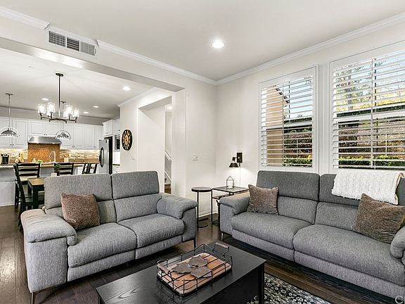 Welcome to the charming neighborhood of Serrano at Blackstone. As you walk inside 2676 E. Santa Fe Road you are greeted by the spacious great room complete with upgraded chef's kitchen and welcoming living room both with great natural light. Island kitchen complete with sleek stainless steel appliances, granite countertops and custom backsplash, and classic white cabinetry. The versatile living room opens up to the low maintenance backyard via double sliding doors. Passing the main floor half bathroom with gorgeous rock wall treatment and up the wrap around staircase, you will find the oversized master suite that even the most discriminating buyer will love. The light and bright master bathroom features contemporary styled dual vanities along with separate shower and luxurious oval tub. Down the hall awaits the fantastic laundry/storage room combo, full bathroom and two additional spacious secondary bedrooms. Outside, the fully pavered, private patio area is a wonderful spot for outdoor entertaining! Double car garage with direct access. Beautiful neighborhood with open space, walking trails, close to all schools, the Brea Mall, great freeway access. The gorgeous community of Blackstone is Brea's premiere neighborhood, offering some of the finest HOA amenities such as lush. manicured landscaping, massive community swimming pool with views(have you see the HOA pool area? Amazing!), huge palms, park, dog parks, and barbecue areas.