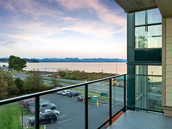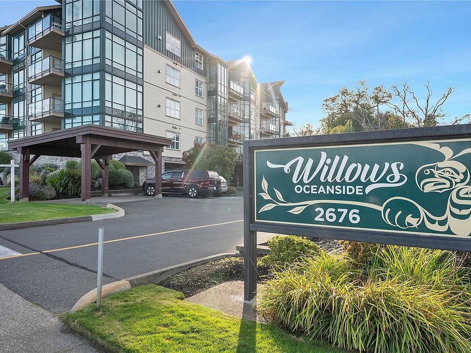 Oceanview condo! This 2 bedroom + den condo is move in ready! Nice open concept design with modern finishings throughout including new carpets in the bedrooms & den plus new paint throughout. The living room has a natural gas fireplace with large windows looking out towards the ocean and the treed area along Willow Creek. Sit on your deck and enjoy the peacefulness of nature whether its the many eagles or ocean marine activity. There is a natural gas BBQ hookup on the deck with access from the living room and primary bedroom. This unit has a parking stall in the garage with a storage unit. There is an elevator in the building and is located across from Ken Forde Beach Park and the Seawalk. Cat and small dog are allowed. Quick Possession is possible. Call your realtor to view today!