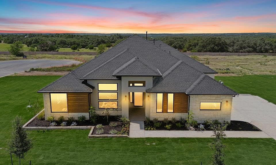 Modern Luxury on One Acre in Leander Estates. Featuring over $147,000 of structural and interior options and upgrades. Experience refined Hill Country living in this stunning Duval floor plan, nestled on a spacious 1-acre homesite in highly sought-after Leander Estates. This thoughtfully designed single-story home offers 3,199 square feet of open-concept living, featuring 4 bedrooms, 3.5 bathrooms, a dedicated home office, and a versatile game room. Enjoy seamless indoor-outdoor flow with an expansive family room boasting 11’ ceilings and a wall of sliding glass doors that open to a large covered outdoor living area—perfect for entertaining or relaxing under the Texas sky. The gourmet kitchen is the heart of the home, complete with a family dining area and additional covered patio access. Whether you're hosting guests or enjoying a quiet evening at home, this residence offers the ideal combination of space, style, and comfort.