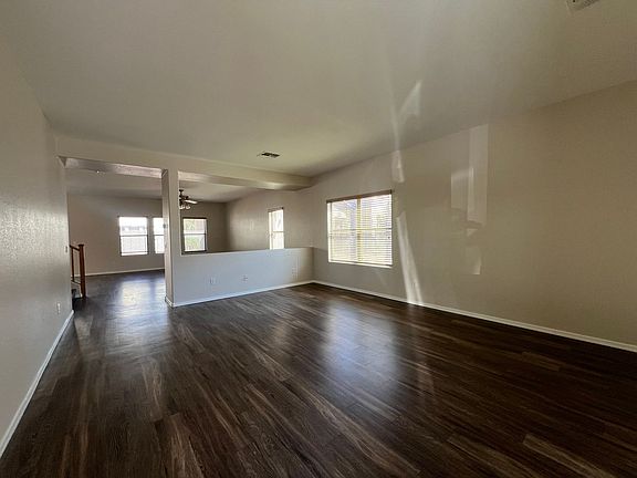 A very open and bright 4-bedroom home in Spectrum offering a large living and great room/family room, kitchen plus a powder room on the lower level. The kitchen features granite counters, pantry closet, breakfast bar. Upstairs you'll find a large loft, laundry room with washer/dryer hookups plus all 4 bedrooms. The primary bedroom has a large closet and ensuite with separate walk-in shower and a bathtub. Fresh paint throughout and newer plank flooring, there's no carpet in this home! Low maintenance yards. Home is walking distance from the elementary school, park and playground, tennis courts and the lush green areas that make this community so beautiful. Minutes from Loop 202 & San Tan Village shopping!