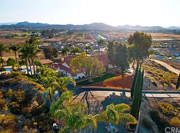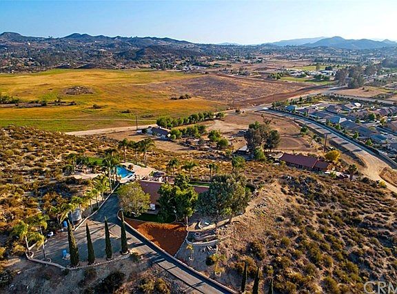 Views, Views and more sweeping unobstructed panoramic views! Your opportunity to own this extraordinary home that has it all! Home boasts 4 bedrooms, 2 baths,with an exercise room,interior laundry room . open concept with a large great room with surround sound with a fireplace . Master bedroom has custom built in cabinetry with ensuite bathroom complete with custom tile shower with granite countertops. As you enter the outside paradise that includes pool with rock slide, and viewing deck to enjoy even more views of the Menifee Valley. Covered patio, palapa bar and built in BBQ. large grass yard in a park like setting, it's an entertainers dream. Home also offers solar and well You can enjoy the serenity of this property yet still be close to schools and shopping. This home is truely a one of a kind, ready for you to make it your own. Call me for a private tour. Seller's motivated, will entertain resonable offers.