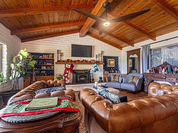 Come see this amazing highly sought after Weir Brothers Adobe home. Beautifully upgraded and open living area. Family Room has gorgeous, beamed ceilings and a cozy fireplace. Spectacular views from your spacious yard situated on almost one acre. Extremely private back yard featuring a resort like in ground pool and jacuzzi with a pool house featuring a changing room, shower and bathroom. This home is gated and very private and boasts 3 large bedrooms and an additional large office, newer appliances, owned solar.