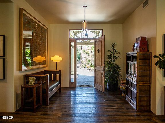 A property of rare beauty and serenity, it begins to reveal itself when passing through the gated entry courtyard. The expansive and very private grounds feel like a personal park with countless trees and lush landscaping and yet is moments away from the village of Los Olivos and all that it offers. The house unfolds and flows seamlessly with virtually no wasted space offering lofted ceilings and easy access to the outdoors from virtually every room including the primary bedroom suite with its own private sculpture garden. Open yet cozy, sophisticated yet grounded, it envelops you with the simplicity of restrained elegance. Across from the main house is the Japanese inspired ''folly,'' a separate space for work or contemplation, clad in yakisugi or charred wood with walls of glass overlooking the sun dappled maple grove (an additional 400 sq.ft). Adjacent to the kitchen/dining area there is an outdoor kitchen which overlooks the bocci court and sheltered outdoor entertainment areas. Overall, a home of great intimacy yet perfect for large events, served by secured, off-street parking for twenty cars. One bay of the three car garage is currently in use as a ceramics studio but was also created as a ''cold room'' for wine storage. Property is fenced and gated. Exquisitely maintained as would be expected. There is also an emergency generator which serves the property.