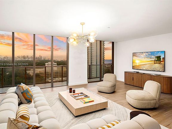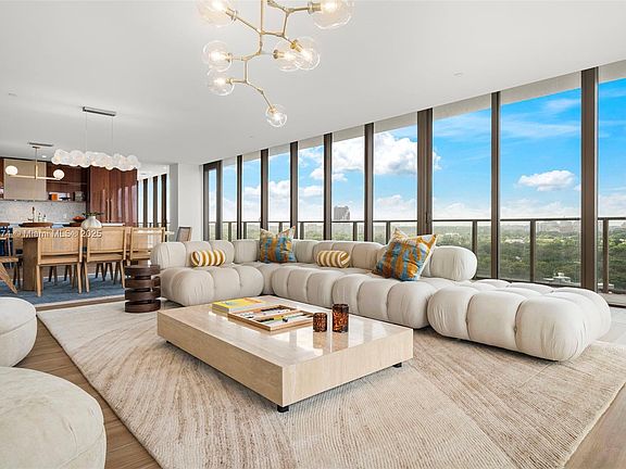Experience this rare turnkey one-of-a-kind sky home, meticulously curated with designer finishes, bespoke furnishings, and exquisite decor. Every detail reflects sophistication from the sleek porcelain flooring to the custom Italkraft kitchen and fully built-out butler's pantry crafted for both elegance and functionality. Expansive walls of glass frame sweeping panoramic views, filling the home with natural light and highlighting the seamless flow between living, family, and dining areas. The thoughtfully designed layout offers generous proportions throughout, ensuring comfort without compromise. As the most expansive floor plan for lease, this residence stands alone as a 1-of-1 condo blending style, scale, & luxury that redefines elevated living at the new Mr. C Residences Tigertail.