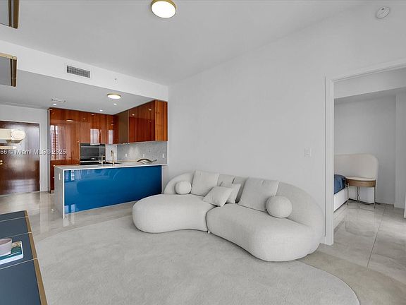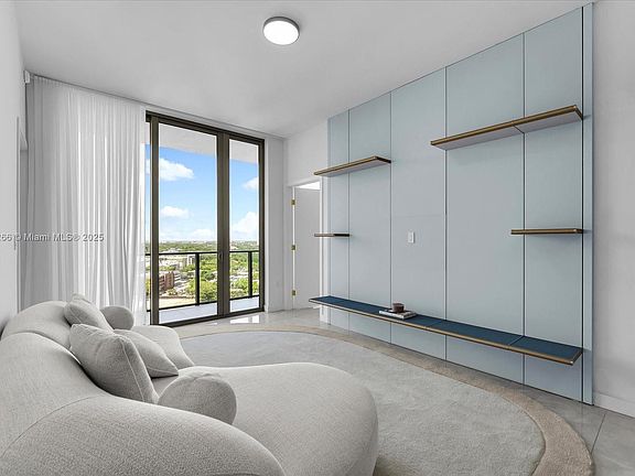 The open-concept layout features floor-to-ceiling windows, filling the space with natural light and framing serene views of Biscayne Bay, Coconut Grove's lush canopy, or the Miami skyline. The sleek chef's kitchen is outfitted with custom Italian cabinetry, premium Sub-Zero and Wolf appliances, and quartz or terrazzo countertops perfect for both everyday living and entertaining.