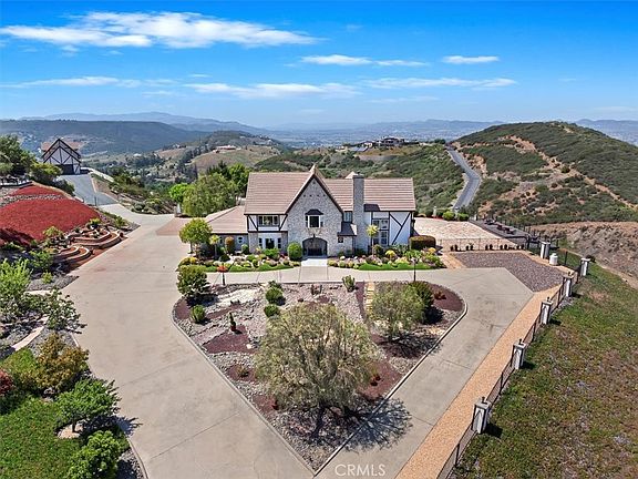 NEW PRICE! $2,499,000-$2,599,000. Nestled in the hills of De Luz, ONLY 4 minutes to Old Town Temecula & freeway. STUNNING 3-RESIDENCE COMPOUND has a combined approximately 5,515 SF LIVING AREA between main home & two separate units + 2,800 SF pre-wired, 2-level DETACHED WORKSHOP / GARAGE offering enormous POTENTIAL AS A THIRD ADU OR LUXURY GUEST HOUSE, with private balcony, patio & scenic views from every angle (a combined total of 8,300+ SF potential living areas). This rare property includes TWO INCOME-PRODUCING UNITS with a 2-bedroom 800 SF BASEMENT APARTMENT with private entrance, 2-car 700+ SF Garage, Kitchenette & covered patio plus a separate 465 SF STUDIO WITH PRIVATE DECK, new flooring & mini-split A/C. Both units are ideal for guests, rentals, or multigenerational living. INVESTORS – SHORT TERM RENTALS ARE ALSO ALLOWED FOR ADDITIONAL RENTAL INCOME POTENTIAL and NO HOA! Separate Garages can hold a total of 9 cars. Fully fenced, dual-gated 5.07 acres offers unmatched privacy, PANORAMIC VIEWS & exceptional versatility. Main grand English Tudor residence spans 4,250 SF with 4 bedrooms, 3 baths, beautiful hardwood and tile flooring, 7” base, crown moulding & high-end finishes throughout. Formal Living Room features 20’ ceilings, stack-stone fireplace, and elegant Kitchen boasts granite counters, stainless appliances, large island & French doors opening to a private patio with SWEEPING CITY AND MOUNTAIN VIEWS. Oversized Primary Suite includes dual French doors to private deck with PANORAMIC VIEWS, a spa-like Bath includes soaking tub & quartz vanities, large travertine shower + custom, walk-in closet with built-ins. Additional features include a Formal Dining Room, Family Room with 3 sets of dual French doors out to private PANORAMIC VIEWING patios and decks, a built-in bar and in-ground hot tub—perfect for relaxing under the stars. Outdoors, enjoy beautifully landscaped grounds, fruit trees (orange, avocado, fig, lemon, lime, tangerine), copper-awning Entry, circular drive, RV parking with electric hookup, and fire safety features include 2 hydrants and fire break. WINDING STONE AND PAVER WALKING PATHS connect multiple private seating and dining areas, each designed to maximize the breathtaking views across Temecula Valley and beyond. This magnificent Estate offers the ultimate combination of space, flexibility, and luxury living in Southern California. Just minutes to Old Town Temecula, Wine Country, restaurants, golf, Pechanga, shopping and freeway.