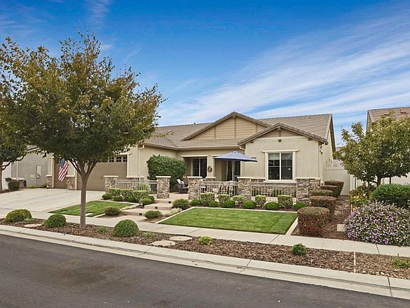 Rare 3-car garage home in the highly desirable 55+ Del Webb Woodbridge community! This beautifully upgraded property features custom-built garage cabinetry & workbenchideal for storage and projects. Enjoy peace of mind with an owned 8-panel solar system and a whole-home Generac automatic generator. Inside, you'll find top-grade wood floors, crown molding, and a spacious hearth room filled with natural light. The kitchen offers granite counters, ample cabinetry, and a large walk-in pantry. Den includes a custom built-in cabinet with Murphy bedgreat for guests or office space. The primary suite features crown molding, automated Hunter Douglas Roman shades, patio access, California organization in Walk in closet and large safe. Two walk-in storage closets, water softener, and tankless water heater add convenience. Washer, dryer, Refrigerator, family room TV and Entertainment center, patio furniture, and guest room furnishings included. Relax on the covered patio with extended pergola or sip coffee from the front courtyard with views of Liberty Park. Resort-style amenities include clubhouse, indoor/outdoor pool, gym, pickleball, walking trails, clubs & more.