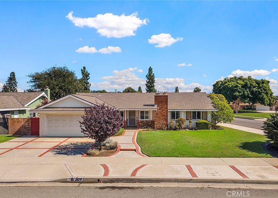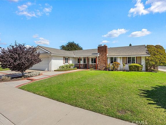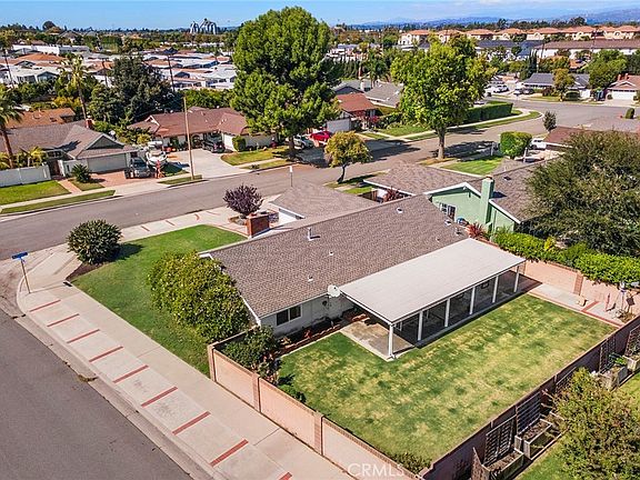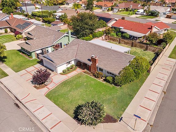This spacious 4 Bedroom 2 bath home has lots of recent upgrades including Newer Milgard Windows and Slider, PEX Plumbing, Newer Roof, PLUS Brand NEW AC Unit and Fresh Paint! Step into this mid-century charmer featuring an extra large living room with a brick fireplace, perfect for entertaining. The cute country Kitchen flows into the spacious Dining Room with beautiful oak built-ins and direct access to the manicured back yard. Enjoy family get-togethers under the huge solid covered patio or relax while bird watching in the evenings. The primary suite is totally separate from the other 3 bedrooms for a little peace and quiet after a busy day with the kids! Laundry day will feel like a breeze with your very own indoor laundry room. 2 car garage and expansive front yard is the icing on the cake! **This Home is located in the TOP Rated Villa Park High School area.**