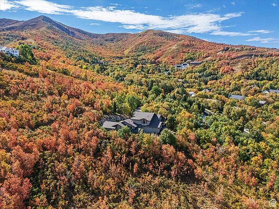Welcome to what we affectionately refer to as "Sunset Estates"-a private sanctuary nestled on 6.13 wooded acres at the end of a quiet lane, just literal steps away from the trails of Mueller Park. This exceptional custom home offers unmatched serenity, breathtaking panoramic views of the valley and Great Salt Lake, and a level of privacy rarely found in Davis County. Designed to impress, the home features soaring windows that flood the living spaces with natural light and frame the incredible vistas. The gourmet kitchen has been beautifully updated with granite countertops, an expansive workspace, and top-tier appliances including WOLF double ovens, gas cooktop, Sub-Zero refrigerator, Bosch dishwasher, and a warming drawer. A large walk-in pantry and an open-concept design make it perfect for both everyday living and entertaining. The main floor offers a formal dining room, spacious office, mudroom, and a generous laundry room. The grand family room centers around a stunning floor-to-ceiling gas fireplace, creating a cozy yet elegant atmosphere. The entire top floor is dedicated to the luxurious primary suite-a true retreat with sweeping sunset views, a large walk-in closet, and a spa-like bath featuring a new soaking tub, double vanity, and dual-head shower. All of the bathrooms throughout the home have been thoughtfully updated with high-end finishes and modern style. Downstairs features 10-foot ceilings, a theater room with included equipment, a secure vault room, and three spacious bedrooms-two with walk-out access to a newly rebuilt upper deck that showcases even more of those stunning views. Additional highlights include a retractable-roof greenhouse, a comprehensive fire suppression system, updated HVAC systems, mature landscaping and ample space for outdoor enjoyment or future expansion. This is a rare opportunity to own a truly secluded estate in one of Davis County's most picturesque settings. Homes like this don't come along often-schedule your private showing today.