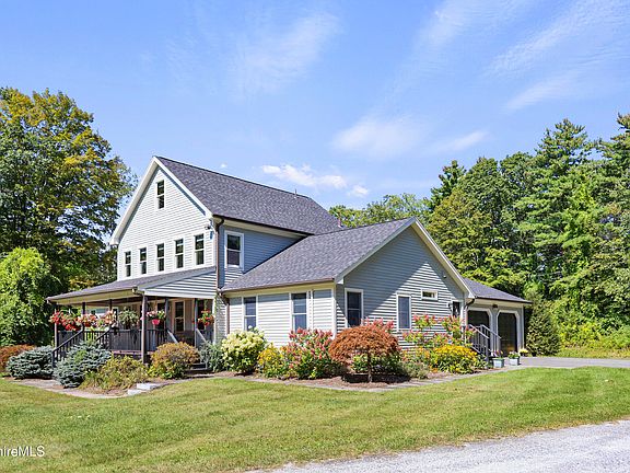 A beautiful Contemporary on 11 private acres, 6 miles to downtown Great Barrington. The open-plan, gourmet kitchen and dining area feature a Viking range, stone countertops, and a large pantry. French doors open to a delightful four-season porch, perfect for enjoying the western views and surrounding beauty. The large living room boasts a striking floor-to-ceiling chiseled stone fireplace, cathedral ceilings, and glass doors leading to the deck, lovely first floor en-suite primary. Offering flexibility and comfort, the home includes two additional ensuite bedrooms and a nursery room on the second floor, plus a third floor dorm room ensuite. A beautiful front porch an attached two-car garage and a classic barn complete this special property. Close to all that is the Berkshires. This home has been lovingly cared for and looked after. Large family gatherings were enjoyed on holidays. It is an entertainers dream as the flow allows for large gatherings without feeling crowded. Sunsets are beautiful as is the western view. It is less than 10 minutes to Guido's and Butternut. New Marlboro offers four of the finest restaurants in the county as well as its well kept secret, Umpachene Falls Park where the Konkapot River and the Unpachene meet to create a magical waterfall. This home is 2 1/2 hours to both Boston and NYC.