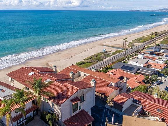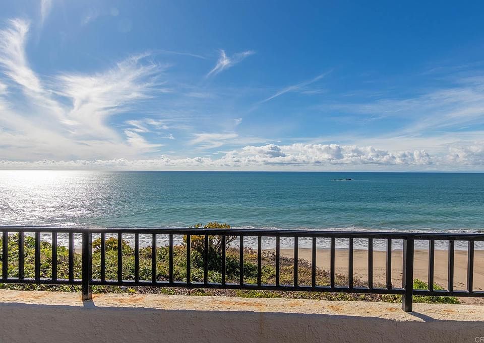 Perched right over the beach with spectacular, unobstructed views of the Pacific Ocean, Catalina Island and San Clemente Pier, this condominium offers access to Calafia Beach and the San Clemente Pedestrian Beach Trail leading to the Pier, restaurants, shops and more. This generously sized two-bedroom condominium is one of just nine residences within the exclusive Sea Point Villas community. Experience stunning sunsets from the living room, by the fireplace, or from the primary bedroom and bathroom on the upper level. The second upstairs bedroom includes a bathroom with a walk-in shower. The open floor plan offers flexibility with two options off the bright kitchen for dining, den or office. Laundry hook-up is conveniently located in the upstairs hallway. This condo includes a stairwell skylight to bring in natural light and two balconies to maximize enjoyment of the ocean views and breezes. Behind the gate a spacious two-car garage includes a storage closet and work bench. This residence is ideally located to experience everything this special coastal city has to offer.