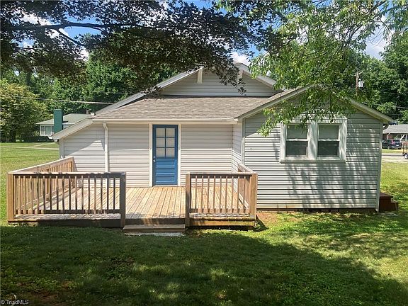 Charming, updated 2 bed 1 bath home sitting on 1.1 +/- acres. Conveniently located just a few minutes from Elkin, while still within 30 minutes of North Wilkesboro. Kitchen boasts ample cabinet space with beautiful countertops. Updated bathroom offers an easy access walk in shower. Per the sellers, previous owners installed new roof 2022, new heat pump 2023, new flooring throughout, as well as new sheetrock and insulation in walls. The 22'x8' covered front porch offers plenty of room to sit and relax, or if you prefer, the 16'x12' back deck would be a great place to fire up the grill while you enjoy the sound of birds and nature in your own backyard. All offers welcome!