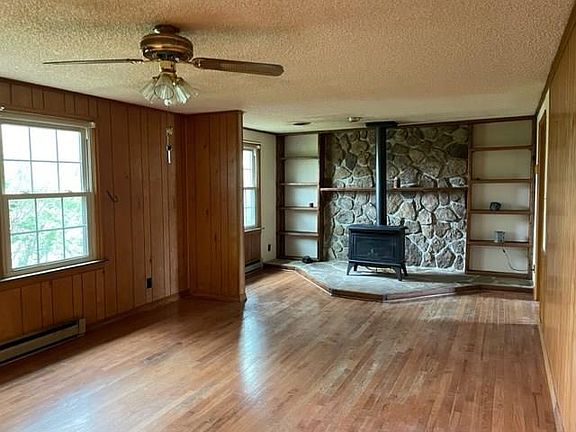 RANCH HOME... Full Basement can finish and add to living area. Staircase from main floor to basement. Property includes a Barn plus 2 storage buildings. Awesome view from Sun Porch. Seller receives FREE GAS/GAS WELL on property Beautiful hardwood floors... 2 full baths, gas fireplace with blower keeps this home toasty warm on those cold nights.