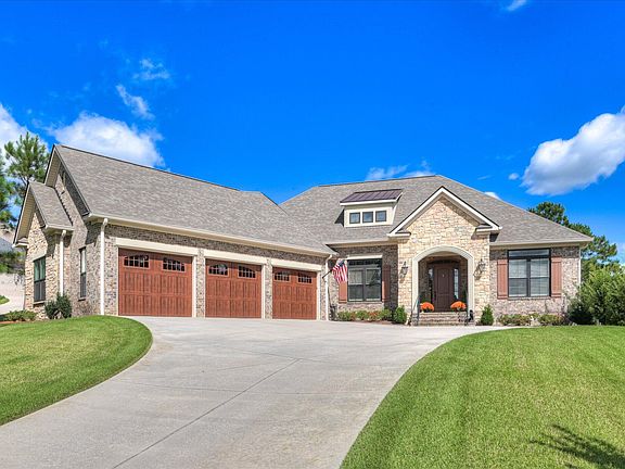 Upon arrival, the home immediately impresses with its striking curb appeal, featuring a beautifully crafted brick and stone façade, classic carriage-style 3-car garage doors, and expertly landscaped grounds.