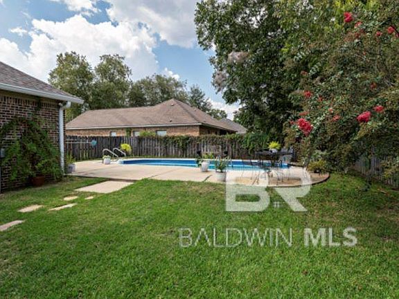 Step into your dream home in coveted Falls Creek, Fairhope. This custom-built, single-story 4-bedroom, 2-bath residence lives effortlessly on a corner 0.33-acre lot with a side-entry, two-car garage. Through welcoming double doors, you’ll immediately appreciate the open-concept floor plan — from tray ceilings and a gas fireplace to luxury vinyl plank flooring and warm natural light throughout. The kitchen and breakfast nook open toward the backyard, seamlessly connecting indoor and outdoor living. The primary suite offers a tranquil retreat with a spa-like en-suite bath, while guest rooms are tucked away for privacy. Outside, take the party to your in-ground pool and patio, surrounded by a fenced yard ideal for entertaining or relaxing. All this in a friendly, well-established neighborhood with sidewalks, yet just minutes to shopping, schools, and downtown Fairhope. With a modest HOA and a strong sense of community, this home is a rare find in today’s market. Buyer to verify all information during due diligence.