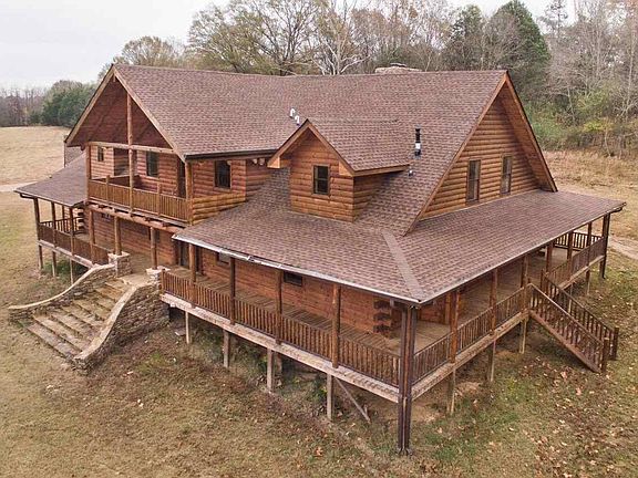 Looking for land in Madison County? This beautiful custom built log home estate is ready for NEW owners. Two-story home with 4 bedrooms and 4.5 baths in 5800 square feet on 12.80 acres. This floor plan includes all the extra rooms and space you dream of....like a large office, mud room, laundry room, gun room space in office closet, large walk in closets, large covered wrap around porch with an stone fireplace. Fabulous kitchen with all stainless appliances, copper apron sink, top of the line refrigerator that remains. Master bedroom has two walk-in closets, 168 gallon 36 jetted tub with it's own hot water heater, Exposed Red Pine beams, hickory floors, pine wood floors, granite countertops, two wood burning fireplaces, all walls have Ponderosa pine siding, and much more....