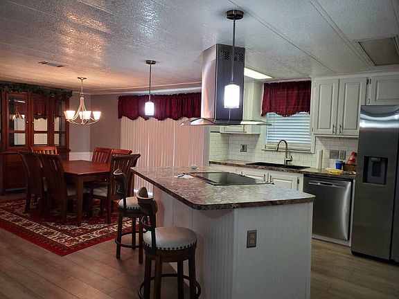 IMMACULATE**STATE-OF-THE-ART**DREAM HOME** located centrally in the esteemed Winterset Shores Community awaits your arrival! This peaceful LAKESIDE community is the perfect home for water enthusiasts, situated between Lake Winterset and Lake Ruby and within reach of all Chain of Lakes in the heart of Central Florida! The seller is motivated, so this is your opportunity to have the home you've always dreamed of! This beautiful oasis boasts a large open floor plan with 2 large bedrooms and baths, offering an ideal blend of convenience and comfort with over 1300 sq. ft. of living space. WOW! Step inside to a ONE-OF-A-KIND home tastefully designed and decorated. The state-of-the-art kitchen is a CHEF'S DREAM come true with beautiful stainless steel appliances: a side-by-side refrigerator with ice/water dispenser, dishwasher for easy cleanup, built-in microwave, and center island range with central hood. Modern white cabinetry, beautiful laminate counter tops, and a sleek double black sink with a gooseneck faucet make this room a desirable location in the home. Enjoy morning coffee and pastries on the island or a quick lunch before heading off to the pool. Off the kitchen adjoins a SPACIOUS dining area for entertaining a large group. This room comes with a dining table and chairs, and a beautiful China cabinet to display your precious glassware and treasures. Move the party into the front LIVING ROOM, adorned with windows for natural Florida light and furnished with an electric sofa, recliner, entertainment center, 2 end tables, coffee table, and curtains. Relax in a home with gorgeous vinyl plank flooring, which adds elegance throughout the home. Wainscoting, trim, crown molding, light fixtures, and other modern updates give this home a luxurious and grand appeal! This home has it all!! UPDATES include new flooring, appliances, showers, bathroom sinks, a screened porch, and a back deck! Retreat to a LARGE master bedroom with a beautifully updated en suite, double sink vanity, and exquisitely tiled shower. This master suite comes equipped with a gorgeous king-sized bedroom set, dresser, and two nightstands. Awake rested for another day in paradise! The FLORIDA LANAI boasts new floors and glass windows, making it a serene place for relaxation, also adding more living space to your new home! In addition, relax on your new BACK DECK and relish the desirable Florida climate! A FENCED backyard is perfect for your pets!! LOCATION! LOCATION! LOCATION! This sanctuary is the best-kept secret in Winter Haven! DIRECT ACCESS TO LAKE WINTERSET - LOCATED ON THE FAMOUS CHAIN OF LAKES! There is even room to store your boat trailer. Lot rent is $978 and includes water and trash service and a community boat ramp. Bring your furry family because this park is PET-FRIENDLY! It also includes gated access and a lakeside clubhouse. Do not miss out on this amazing opportunity! This is your chance to live the Florida dream! Must be park-approved to purchase in the community. All listing information is deemed reliable but not guaranteed and should be independently verified through personal inspection by appropriate professionals. Our company does not and cannot guarantee or warrant the accuracy of this information or the condition of this property. Measurements are approximate. The buyer assumes full responsibility for obtaining all current rates of lot rent, fees, and pass-on costs. Additionally, the buyer is responsible for obtaining all rules, regulations, pet policies, etc., associated with the community, park, or home from the community/park manager. Our company is not responsible for quoting said fees or policies. Financing is available through 3rd party lenders. The sales price does not include tax, dealer fees, or administrative fees. Don't hesitate to get in touch with the sales agent for additional information.