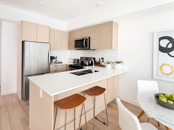Stylish and sophisticated kitchens featuring quartz countertops, flat-panel wood grain cabinetry and energy efficient stainless steel appliances including a quiet, energy efficient in-suite Whirlpool washer and dryer