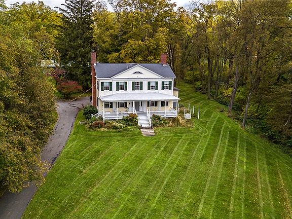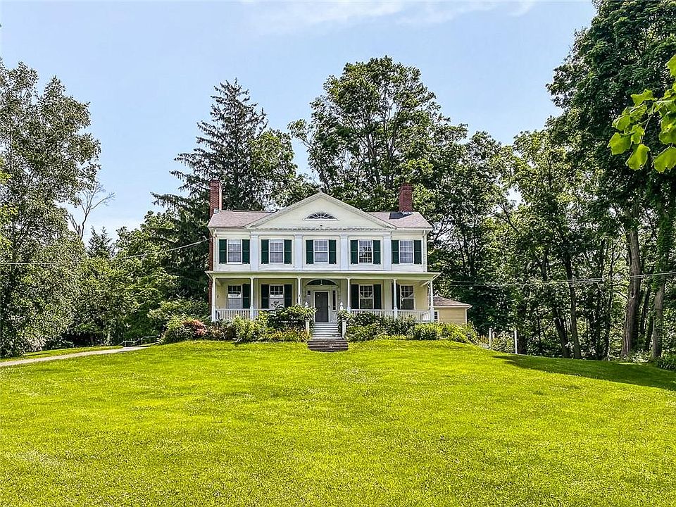 Stunning blend of early American architecture and perfect Finger Lakes locale set in the most beautiful "you imagined it" village of Aurora, NY. The circa 1810 Peter Fort house stands tall on a glacially formed hillside overlooking Cayuga Lake. This majestic Adam Style Colonial is festoon with high style details from it's centered dominant gable and lunette window with spiderweb muntin, to its ornate dentil cornice with modillions! Enjoy the sprawling full-length porch with colonial columns and acorn finials. To step inside this historic treasure is to step back in time as you look through the same wavy glass windows that Colonel Fort whom served in the War of 1812 with President Andrew Jackson once had. Impressive entry foyer w/elegant staircase, high ceilings & ornate plaster moldings. Formal Dining & Living rooms each with frplcs, ornate trim & blt-ins. A cozy rear parlor and modern maple kitchen with ample storage completes the main floor. Beautifully appointed west facing bdrms w/frplcs beam with natural light. A walkout LL leads to a vegetable garden and verdant grounds. Vacation escape or year round, make this time-honored Finger Lakes relic yours! A Museum you can live in!
