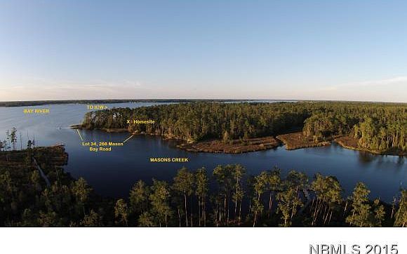Large, private waterfront lot on the shores of Bay River and Masons Creek. Homesite faces west for great sunsets. Masons Creek provides protected area for dock. Bay River offers the best boating water in the Inner Banks, which is the best cruising water on the East Coast. Enjoy fishing, hunting, sailing, kayaking, shrimping, crabbing and many cruising hours. Due to the protection of Bay River you have more boating days than the open waters of Pamlico Sound. From here you are close to the ICW, Outer Banks, fishing waters of the Gulf Stream & the beaches of coastal Carolina. The level topo of the lot gives you a large and very private homesite. Oriental, NC, the ''Sailing Capitol'' of NC is nearby offering services, restaurants, cultural activities and shops. A quality waterfront lot