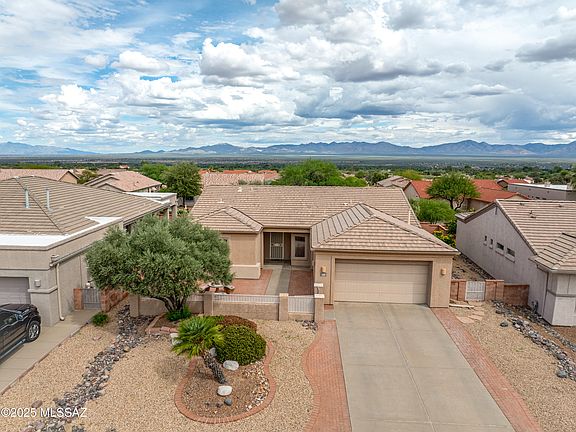 Clean, Light-Filled & Move-In Ready with Mountain Views! Impeccably maintained and full of natural light, this home is ideal for full-time living or seasonal enjoyment. A charming oversized courtyard welcomes you into a bright and open floor plan featuring large rooms, plentiful windows, a den, and a versatile space which can be an office, hobby space or extension of your kitchen. The kitchen offers ample storage and prep space. Enjoy mountain views and Arizona's outdoor lifestyle in the backyard with both covered and open patio areas. An extended 2-car garage allows for extra storage. With a membership to the Green Valley Rec, this home is a wonderful opportunity in one of Green Valley's unique communities!