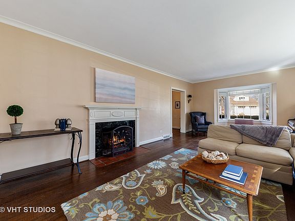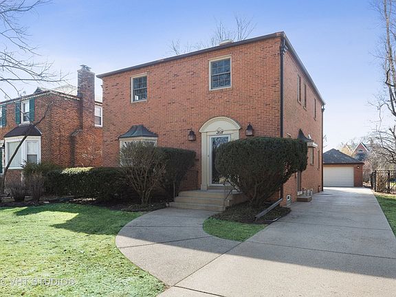 Gorgeous & updated 4 BR, 2 BA all brick Georgian on stunning tree lined street in historic Riverside! The inviting foyer welcomes you into this elegant home that features a spacious living room with fireplace, elegant dining room with charming built-in corner cabinets that leads to a delightful screened in porch overlooking the extra deep landscaped lot. The sunny eat-in kitchen has white shaker cabinets, stainless/butcher block counter tops & SS appliances. A bedroom & full bath, perfect for guests/office, complete the 1st floor. The 2nd floor boasts 3 well sized bedrooms, all with an abundance of closet space. The partially finished basement offers a large rec room with 2nd fireplace, work and utility rooms. Beautiful hardwood floors, crown moldings, central AC, & other architectural details will appeal to the most discerning buyers. This special property is in walking distance to parks, highly ranked schools, central business district, Metra station & close to major expressways.