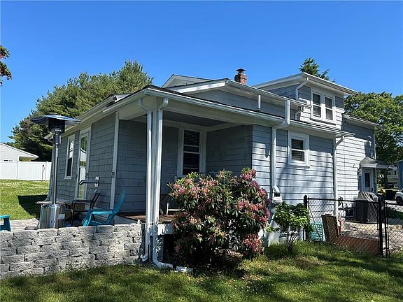 Western Cranston, Old and quaint but surely up to date! Darling cottage home nestled on over a half-acre of land. The yard is fully fenced in, spacious to play and garden with an outside patio area to grill and enjoy a great summer night! Septic 2012. Inside is modern and updated. Huge awesome renovated kitchen, granite counters, stainless appliances. Off of the kitchen is a formal dining room and living room, hardwood floors, that has access to the patio and back yard. There is a first-floor primary bed with a large walk-in closet. There first floor laundry and storage room, large first floor tile bath with a walk-in tile shower. The 2nd floor has a small den/office or play area in between the beds, 2 bedrooms, mini splits in both beds, full bath with a tub and shower. Also included is a newly constructed extra-large detached double garage 24x32, approximately 720sf, a contractor's delight! High overhead 10' doors. This home has super-efficient on demand Navien gas heat which makes this home super affordable and ready to move in!