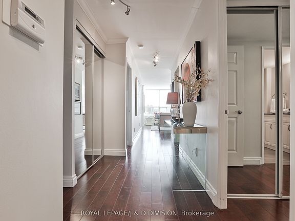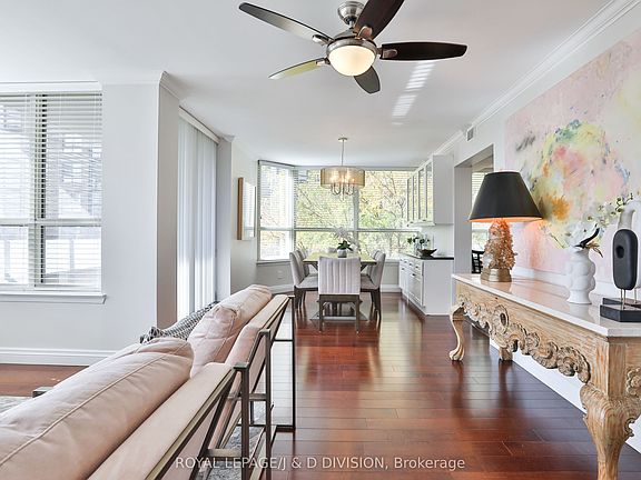 Rarely available, this southwest-facing corner suite in a coveted Tridel community offers over 1,500 SqFt of refined living. Sunlit interiors showcase a renovated kitchen with granite counters, breakfast room and full pantry, while open living and dining spaces feature hardwood floors, a custom built-in dining room buffet,and wraparound windows with sunny, treetop views. The versatile family room serves as an entertainment room or office and opens to a second bedroom with Japanese-style privacy doors and concealed fold-away Murphy bed (currently open). The primary retreat includes two walk-in closets, expansive windows and 5-piece ensuite. Additional highlights include ensuite laundry with full size stacked front load washer and dryer, a generous balcony, two parking spots (tandem), private locker and access to updated amenities: gym, party room, billiards, library, sauna, and outdoor pool. With utilities included and a premier location near parks, Avenue Road fine shops, upscale dining, TTC and Hwy 401, this turnkey residence epitomizes sophisticated urban living.