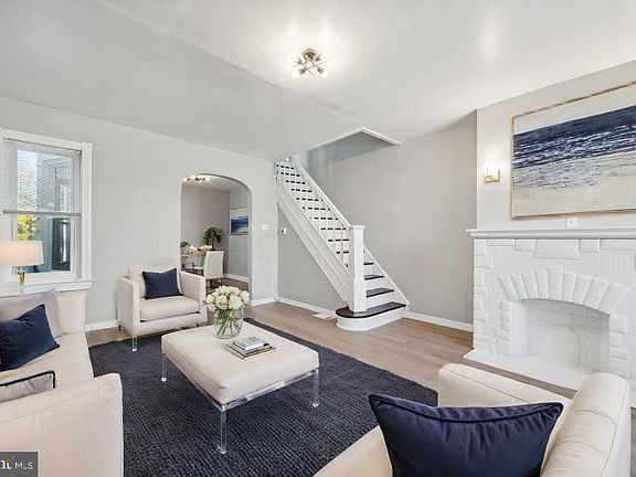 This home qualifies for $10,000 Pathway to Prosperity home loan assistance, including the possibility of interest rate buy-down. Fully remodeled in 2021 (including central heating & cooling), this Cobbs Creek gem is bright, spacious, affordable, and charming. Enter through the mud room featuring beautiful original glass door into the living room, which has a beautiful faux fireplace and mantle. The kitchen has lots of natural light and ample counter space with modern shaker cabinets and stainless steel appliances. Upstairs are 3 spacious bedrooms and closets with the master front bedroom featuring bay windows. The basement is partially finished with washer and dryer, half bath, and lots of space for gathering and storage. Upstairs has brand new flooring. Freshly painted and touched up throughout. Backyard has patio tile and ample space for gatherings, BBQ, and a partial alley for storage.