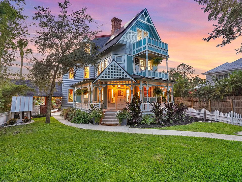 Step into the enchanting embrace of the notable Upham Winter Cottage, a captivating Queen Anne Victorian nestled on a quarter-acre lot within the heart of St. Augustine's cherished historic preservation district and listed on the National Register of Historic Places. This world-class historic mansion has recently been renovated from top to bottom to perfection with soft coastal hues in mind ~ enjoy the well-designed balance of rich historic beauty and modern luxury. With 5800 sq ft of living space, 5 bedrooms and 3.5 bathrooms in the main house and a 2 bedroom, 1 bath apartment with private entrance, a full kitchen, living and dining rooms - this home is ideal for multigenerational living or additional income. Located on historic St. George Street, the shops, restaurants, landmarks and culture of the Nation's Oldest City are only steps away. The highly active community association provides additional opportunities to socialize and enjoy the buzz of downtown living. Built in 1893 as a winter retreat for John J. Upham, a veteran of the Civil War and Plains Indian War, this remarkable home showcases the graceful blend of Queen Anne Victorian architecture with examples of Moorish Revival in the courtyard arches. With stunning original millwork, wood floors and unique octagonal shape, this home will take you back to the splendor of the Gilded Age. From joyous Flagler Era galas to legendary Mardi Gras celebrations, The Upham Winter Cottage has been a witness to countless extraordinary events throughout the ages. Today, as you step foot within these storied walls, you become a part of the Upham Winter Cottage's narrative and assume the role of its guardian, preserving the heritage of the past while crafting a new chapter in its history. Nothing compares.