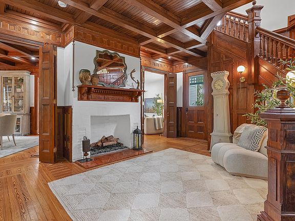 Unique octagonal shapeSoft coastal huesStunning original millworkModern luxuryRich historic beautyWood floors