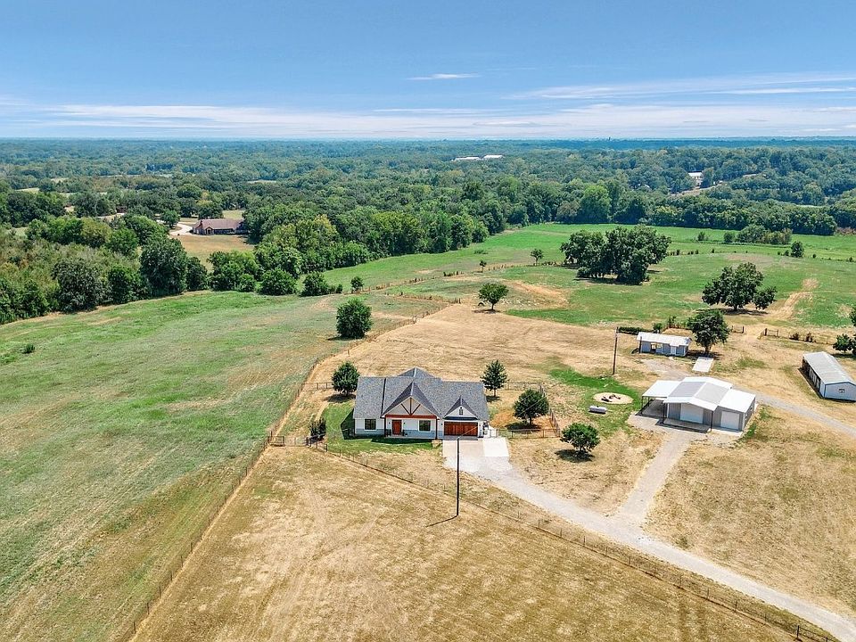 Live the best of both worlds! Welcome to country living with the convenience of being only minutes away from all that Downtown Denison offers & Texoma Medical Center. This stunning modern farmhouse-style home is situated on 50.76 acres of picturesque land. It was recently rebuilt from slab up, so it is a new home! As you step inside, you'll be greeted by an open floor plan that blends modern design with rustic charm. The heart of this home is the beautiful white kitchen, complete with natural granite countertops. Outside, the stables and tack room make this is a dream come true for horse enthusiasts. Additionally, there is a workshop, guest house, & covered RV or boat parking. Ag exemption already in place. Just an hour north of Dallas & minutes from Lake Texoma & Choctaw Casino. Don't miss out on the opportunity to make this your own slice of paradise.