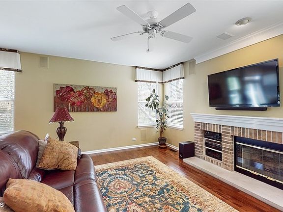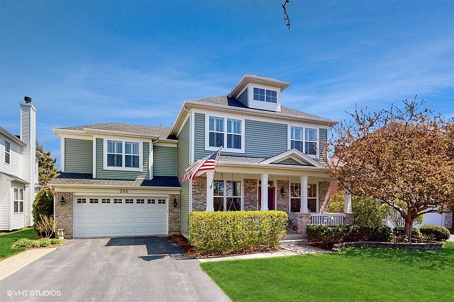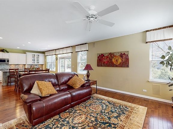 This is the one that you've been looking for! Step into this Norris former model home packed with upgrades in Traditions at Harvest Hill and get ready to be wowed! An entertainer's dream, this 5-bedroom 3.5 bath home features expansive living space on all three levels with custom touches throughout the home. After entering through the picturesque covered front porch, a formal sitting area and an office with a wall of built-ins invite you into the home. Large separate formal dining room with gracious wainscotting greets you as you make your way into the main living space on this level - an open, updated, kitchen with sought after white cabinetry, granite countertops, tile backsplash, large breakfast island with seating and stainless steel appliances that includes built-in double ovens, overlook the adjacent dining area and family room with gas fireplace. Note the hardwood flooring throughout the entire main level (2016). Laundry with utility sink, half-bath and a 3-car tandem garage complete the main level. Upstairs features a LARGE Bonus Room above the garage that includes extensive built-in cabinetry, plantation shutters, as well as a dry-bar and beverage fridge. The Primary Suite includes an updated separate shower and jetted tub, HEATED tile flooring and a large walk-in closet. 3 additional bedrooms with mirrored sliding doors, plantation shutters; as well as an updated bathroom with dual-vanity and updated tile are also on this level. If there weren't enough entertaining spaces on the two floors above, wait until you enter the fully-finished basement, which includes the home's 2nd gas fireplace, large multi-purpose recreation room ideal for your home theater setup, a custom built-in wet bar that includes 2 beverage fridges and full-size dishwasher, the home's 5th bedroom, a full bathroom and additional storage room round out the space. Continue entertaining in your backyard oasis that features mature trees/landscaping, a large stamped concrete patio and your very own above ground swimming pool. The home includes built-in speakers throughout on all 3 levels, extensive custom built-in shelving, 9-foot ceilings, new roof (2018), new vinyl siding (2016) and numerous other custom updates. The home is conveniently located near James O'Breen Community Park - which features pickle ball courts, disc golf, soccer fields and the adjacent Otter Cove Aquatic Park. Coveted St. Charles schools. Shopping and dining along Randall Road and the historic downtowns of St. Charles and Geneva are nearby.