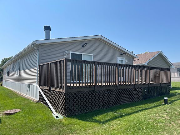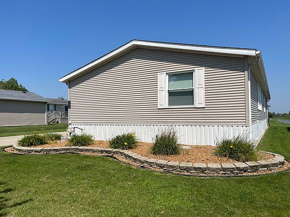 Bring your dogs (up to 2 dogs no aggressive breeds)! Top selling mostly drywall Redman model with 7 rooms. Over 1800 sq. ft. features family room with fireplace and patio doors to deck looking out on a serene pond with GREAT VIEWS! Deck in rear for bird watching. Kitchen has breakfast bar, island, newer sink and faucet, eat-in area and closet pantry and a newer beveled countertop. Remodeled master bath with a big handicapped shower, newer floor and toilet. Living room and dining room plus a 2 1/2 30 ft. long car garage. 2 newer storm doors and all windows. Newer roof on home. Premium RARE POND LOT! New counters in the kitchen and island. Freshly painted. Newer laminate floor in the baths and new carpet with a thick pad t/o. 55+ community with clubhouse and activities. 24/7 manned security gate. Maple Brook is one of the few communities with Chicago water and sewer plus sidewalks!