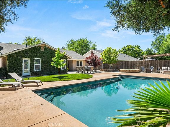 Welcome home to 268 Via Mission Drive located in the sought-after Little Chico Creek Estates neighborhood! It is love at first sight with the charming front porch with shutters and a fabulous shade tree for those warm summer nights quickly approaching. Upon entry you are greeted with a spacious open concept living space and kitchen with laminate floors and a vaulted ceiling. Your eye is immediately drawn to the updated kitchen with timeless wood beam, pendant lights, granite counters, and updated cabinetry. The kitchen also has a garden window, stainless steel appliances, a roomy island, and breakfast nook perfect for your morning Cheerios. The formal dining space sits at the front of the home with large windows allowing for lots of natural light and truly has dual purpose being right off the kitchen. Down the hall you will find two guest bedrooms and the guest bathroom finally leading you to the master suite. The master bedroom has a vaulted ceiling, two closets, and an en suite bathroom that has been remodeled with tile floors, new vanity, a full tile tub/shower combo with glass doors and an exterior door with easy access to the backyard. Outside you will be wowed by the stunning pool and patio areas that are absolutely perfect for summertime fun and entertaining. The home also features a wood burning fireplace, indoor laundry, owned solar, dual pane windows, a new roof in 2018, RV parking, and extra exterior storage. Conveniently located near Meriam Park, shopping, great schools, and hiking trails, this home is a must see!