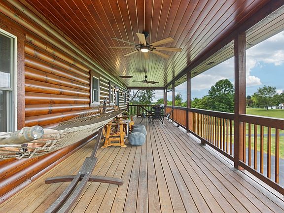 Experience uncompromised country living in this meticulously crafted 3-bedroom, 2-bathroom custom cabin. Centrally positioned on 5 gently rolling acres, this residence has meticulous maintenance and significant upgrades within the past four years. Conveniently located just 45 miles from downtown Nashville, it offers a serene, secluded atmosphere. The property is ideally suited for horses and cattle, featuring pastures enclosed by board, woven wire, electric fencing and remote control power gates, as well as a compact barn with water access. Strategic plantings of rows of Thuja Green Giants enhance both aesthetic appeal and privacy. This custom cabin seamlessly blends a tranquil country lifestyle with modern conveniences. It boasts soaring tongue-and-groove ceilings, a warm gas stone fireplace, and a spacious chef's kitchen outfitted with solid wood cabinetry, expansive countertops, and a premium 6-burner dual-fuel Thor range. The 14-foot-wide covered deck provides an ideal setting to appreciate the peaceful pastures, complimented by dual fans for comfort. For refreshment or relaxation, a private outdoor oasis awaits: a heated, four-season jetted pool, securely situated on a concrete pad within a custom pavilion, perfect for recreation, exercise, or unwinding.