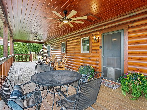 Additional exterior features include a newer roof, leaf guard gutter system, professional staining of the cabin and a paved driveway. The unfinished basement/garage features professionally installed non-slip epoxy flooring and climate-controlled storage. The basement has amazing insulation! ICF (Insulated Concrete Form) The property offers two garages and covered parking for an additional three vehicles, alongside two smaller covered spaces for recreational vehicles.